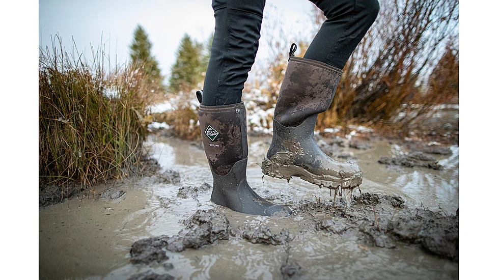 With a bobbed, contoured outsole, Muck Wetland Series Rubber Premium Women’s Field Boots offer stability on uneven terrain without the weight of traditional treading. A Comfort Topline binding hugs the calf to seal in heat and keep cold and debris out. The Airmesh lining of these women’s rubber boots is breathable so that feet stay dry and cool while the 100% waterproof neoprene construction keeps out mud and moisture. An EVA midsole offers additional cushioning to absorb shocks and improve comfort during longer treks. Built with a women-specific last, these rubber field boots have a slimmer fit that better suits the contours of female feet.![]()